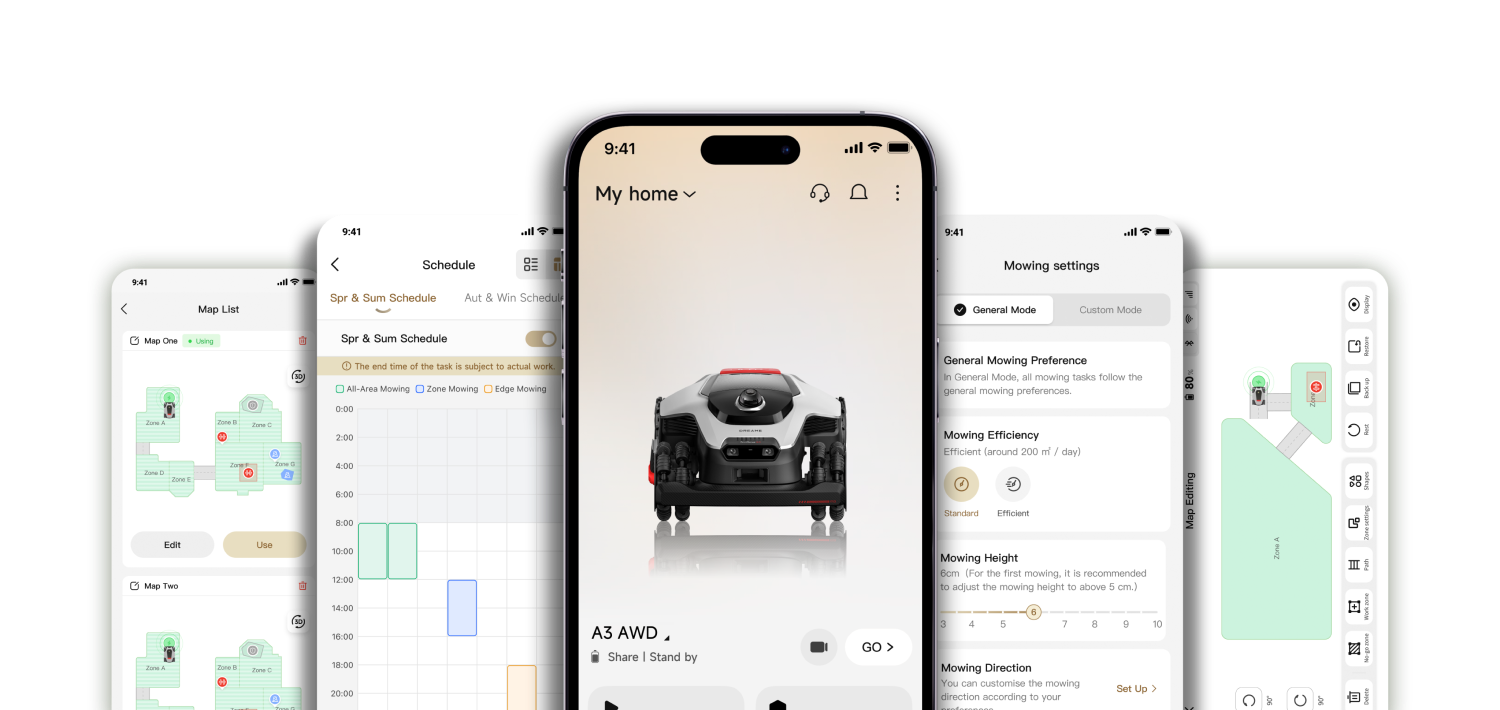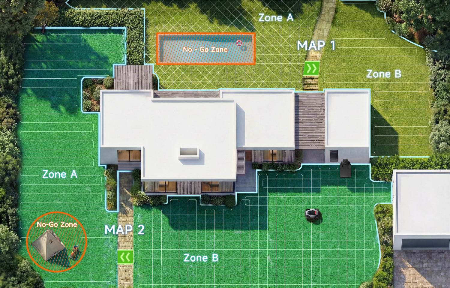 Total lawn mastery, simplified. With 150-zone capacity, you can customize height, frequency, and patterns for different sections of your estate. Experience fully automatic, tailored maintenance that adapts to the unique layout of your home.